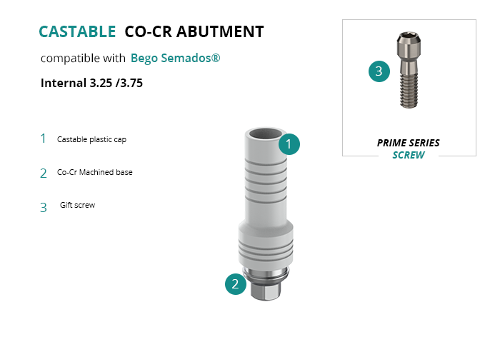 Castable Abutment with Co-Cr Base compatible with Bego Semados® Internal 3.25 /3.75