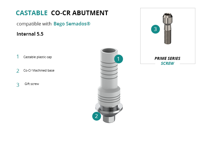 Castable Abutment with Co-Cr Base compatible with Bego Semados® Internal 5.5
