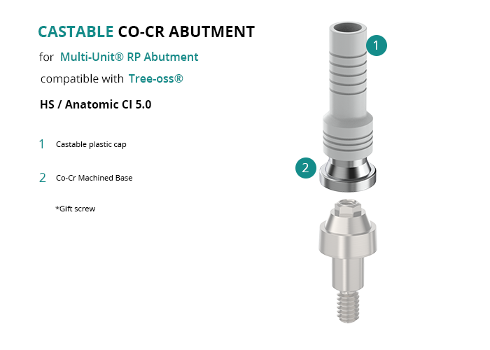 Castable Abutment with Co-Cr Base for Multi-Unit® RP Abutment compatible with Tree-oss® HS / Anatomic CI 5.0