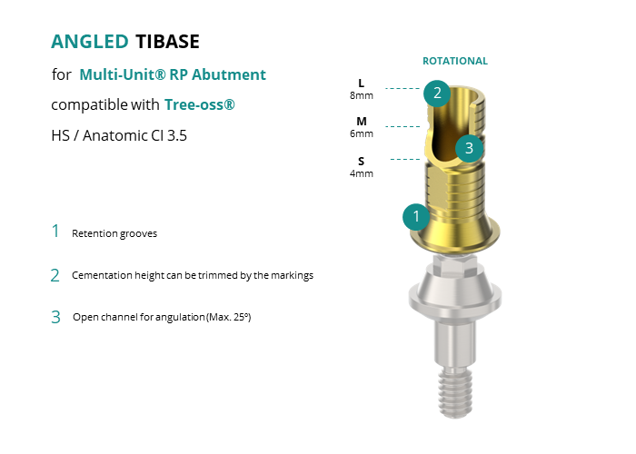 Angled Titanium Base for Multi-Unit® RP Abutment compatible with Tree-oss® HS / Anatomic CI 3.5