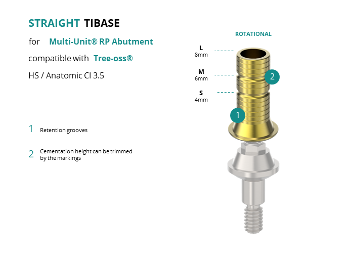 Titanium Straight Base for Multi-Unit® RP Abutment compatible with Tree-oss® HS / Anatomic CI 3.5