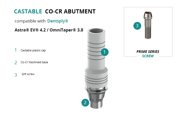 Castable Abutment with Co-Cr Base compatible with Dentsply® Astra® EV® 4.2 / OmniTaper® 3.8