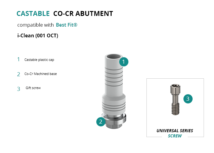 Castable Abutment with Co-Cr Base compatible with Best Fit® i-Clean (001 OCT)