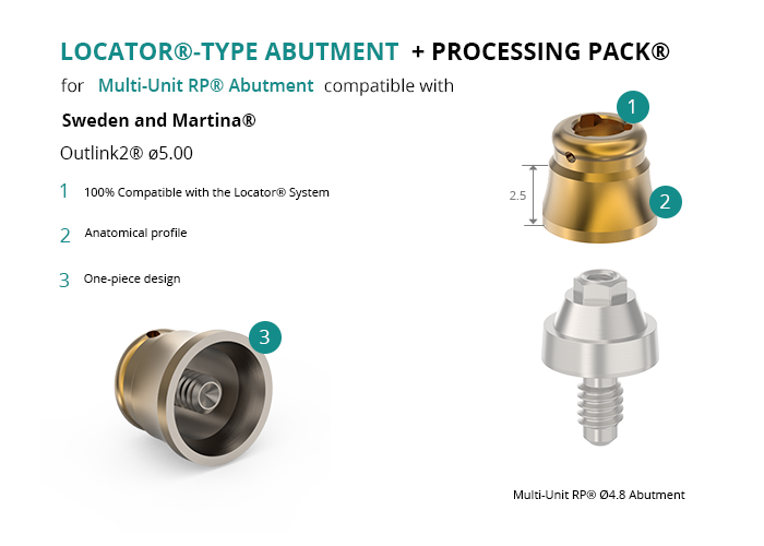 Locator®-Type Abutment for Multi-Unit® RP Compatible with Sweden and Martina® Outlink2® Ø5.00