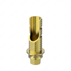 GT-Medical's Angled Ti-Base are compatible with Prama® (Standard Prosthesis) implants from Sweden and Martina®, ensuring a stable and long-lasting connection between the implant and the prosthesis, while also allowing angulations to be corrected up to 25 degrees. They are made entirely of Titanium Grade 5 with a yellow anodizing for a more aesthetic finish. They have a cementation trunk that can be cut to various heights with an open channel to allow angulation, 3 flat faces to perform the anti-rotating function and a gingival body of various heights, depending on the type of connection.