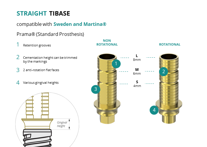 Titanium Straight Base compatible with Sweden and Martina® Prama® (Standard Prosthesis)