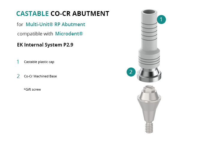 Castable Abutment with Co-Cr Base for Multi-Unit® RP Abutment compatible with Microdent® EK Internal System P2.9
