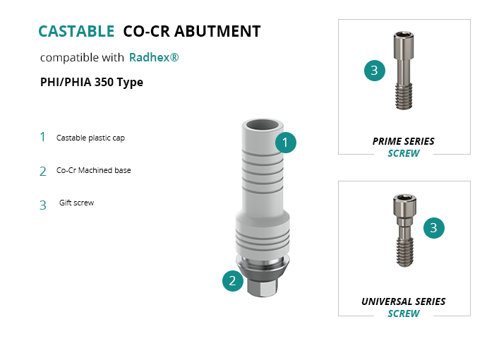 Castable Abutment with Co-Cr Base compatible with Radhex® PHI/PHIA 350 Type