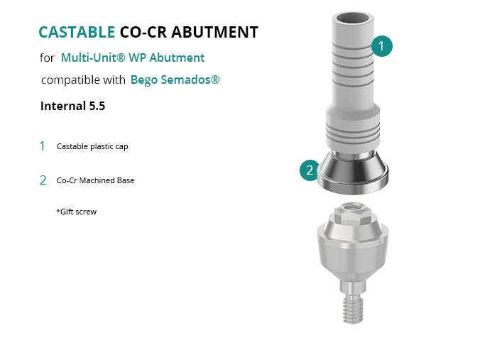 Castable Abutment with Co-Cr Base for Multi-Unit® WP Abutment compatible with Bego Semados® Internal 5.5