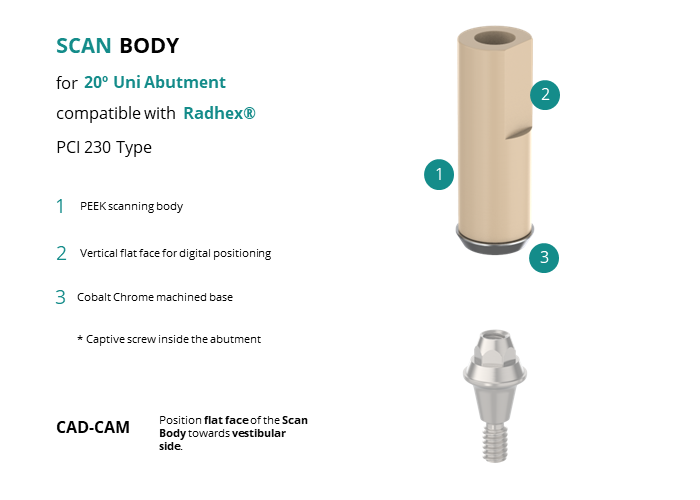 Scan Body for 20� Uni Abutment compatible with Radhex® PCI 230 Type