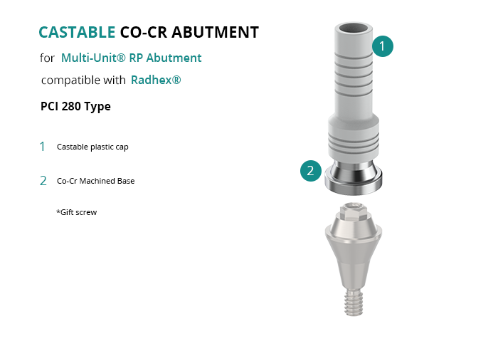 Castable Abutment with Co-Cr Base for Multi-Unit® RP Abutment compatible with Radhex® PCI 280 Type