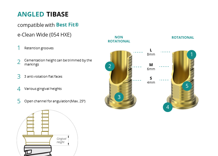 Angled Titanium Base compatible with Best Fit® e-Clean Wide (054 HXE)