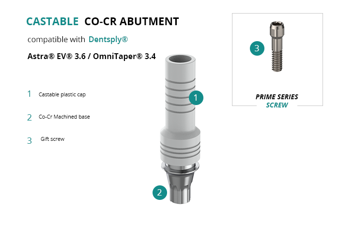 Castable Abutment with Co-Cr Base compatible with Dentsply® Astra® EV® 3.6 / OmniTaper® 3.4
