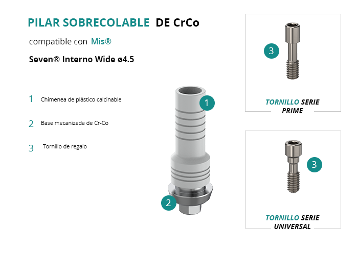 Pilar Sobrecolable de CrCo compatible con Mis® Seven® Interno Wide Ø4.5