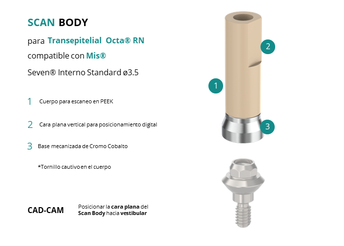 Scan Body para Transepitelial Octa® RN compatible con Mis® Seven® Interno Standard Ø3.5