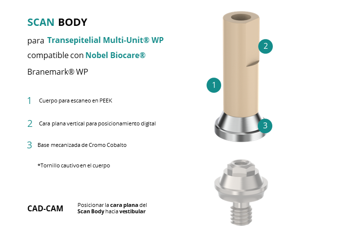 Scan Body para Transepitelial Multi-Unit® WP compatible con Nobel Biocare® Branemark® WP