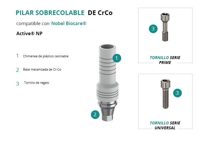 Pilar Sobrecolable de CrCo compatible con Nobel Biocare® Active® NP