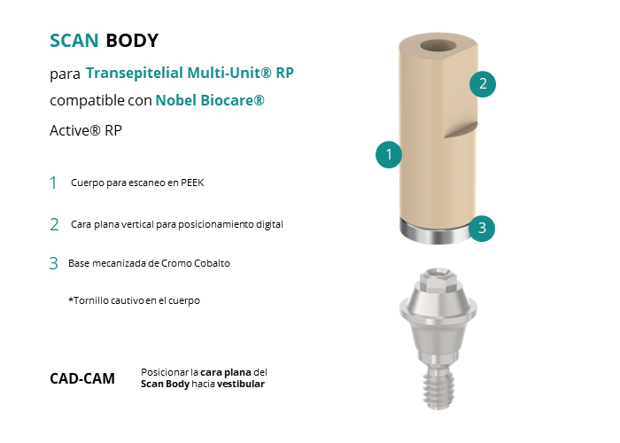 Scan Body para Transepitelial Multi-Unit® RP compatible con Nobel Biocare® Active® RP
