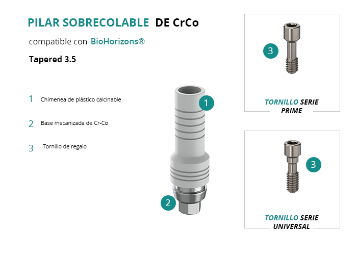 Pilar Sobrecolable de CrCo compatible con BioHorizons® Tapered 3.5