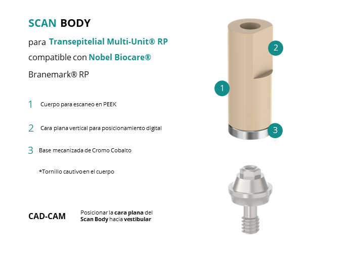 Scan Body para Transepitelial Multi-Unit® RP compatible con Nobel Biocare® Branemark® RP