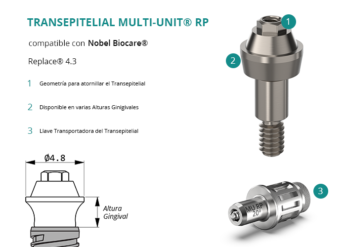 Transepitelial Multi-Unit® RP compatible con Nobel Biocare® Replace® 4.3