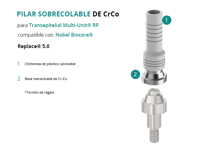 Pilar Sobrecolable de CrCo para Transepitelial Multi-Unit® RP compatible con Nobel Biocare® Replace® 5.0