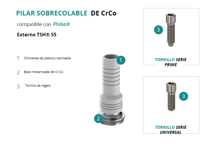 Pilar Sobrecolable de CrCo compatible con Phibo® Externo TSH® S5