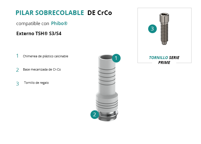 Pilar Sobrecolable de CrCo compatible con Phibo® Externo TSH® S3/S4