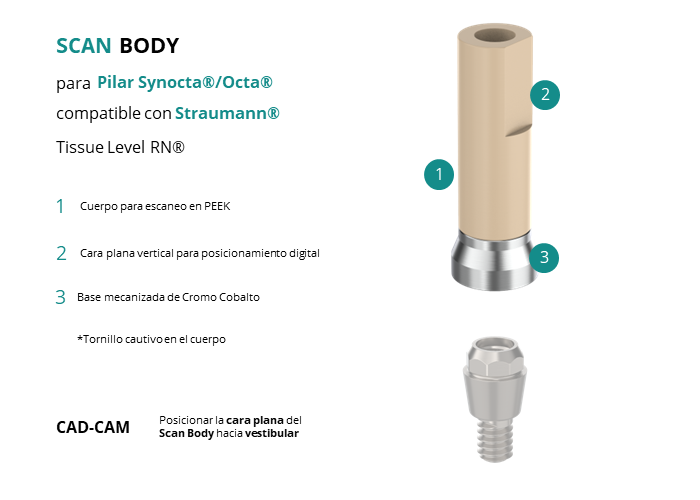 Scan Body para Pilar Synocta®/Octa® compatible con Straumann® Tissue Level RN®