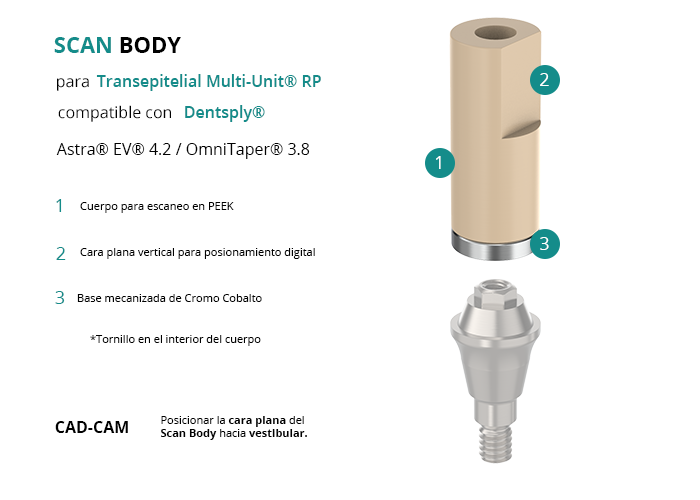 Scan Body para Transepitelial Multi-Unit® RP compatible con Dentsply® Astra® EV® 4.2 / OmniTaper® 3.8