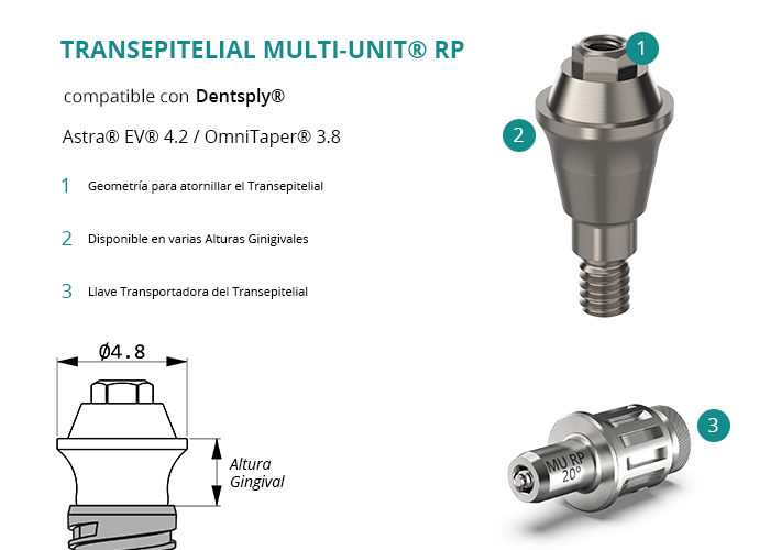 Transepitelial Multi-Unit® RP compatible con Dentsply® Astra® EV® 4.2 / OmniTaper® 3.8