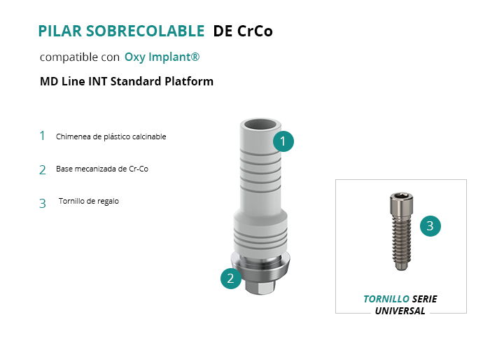 Pilar Sobrecolable de CrCo compatible con Oxy Implant® MD Line INT Standard Platform