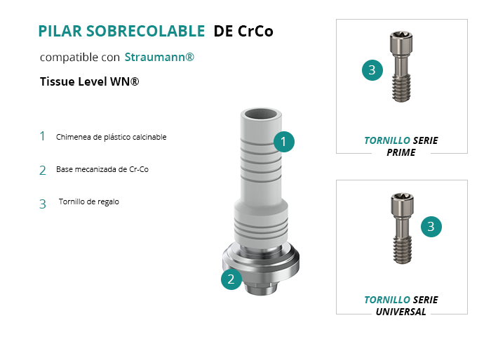 Pilar Sobrecolable de CrCo compatible con Straumann® Tissue Level WN®