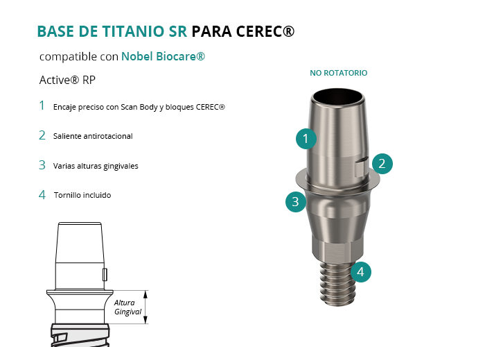 Base de Titanio SR para Cerec® compatible con Nobel Biocare® Active® RP