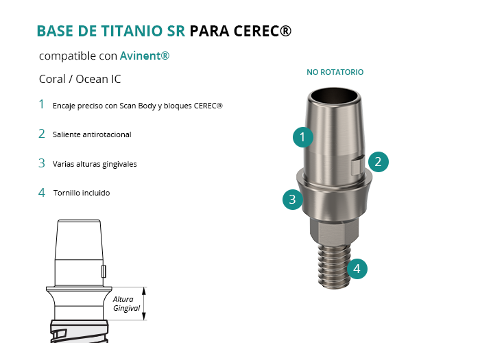 Base de Titanio SR para Cerec® compatible con Avinent® Coral / Ocean IC