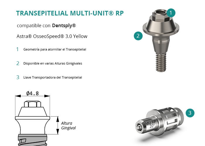Transepitelial Multi-Unit® RP compatible con Dentsply® Astra® OsseoSpeed® 3.0 Yellow