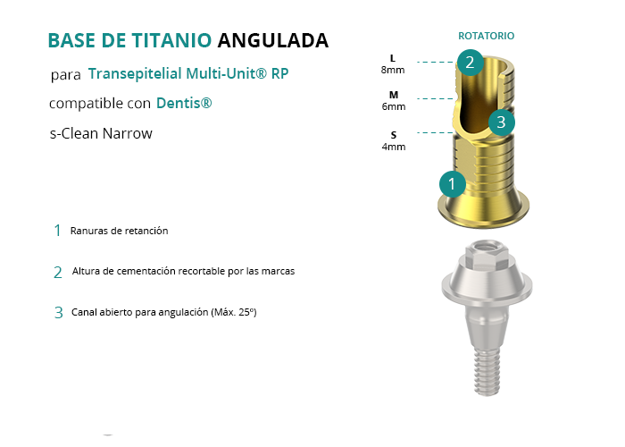 Base de Titanio Angulada para Transepitelial Multi-Unit® RP compatible con Dentis® s-Clean Narrow