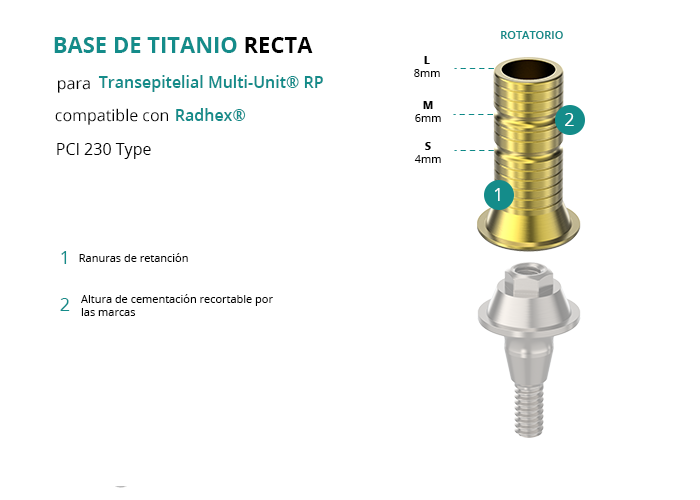 Base de Titanio Recta para Transepitelial Multi-Unit® RP compatible con Radhex® PCI 230 Type