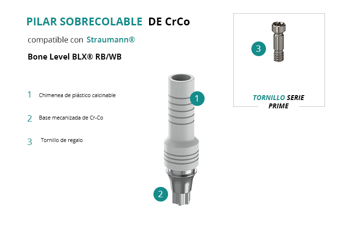 Pilar Sobrecolable de CrCo compatible con Straumann® Bone Level BLX® RB/WB