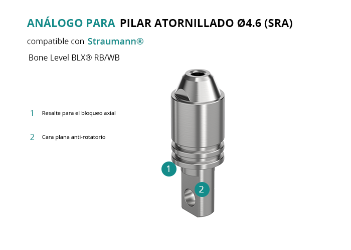 Análogo para Pilar Atornillado Ø4.6 (SRA) Compatible con Straumann® Bone Level BLX® RB/WB