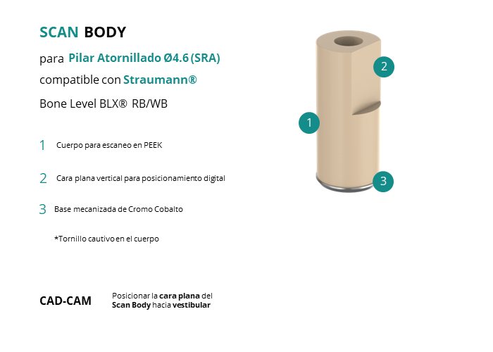 Scan Body para Pilar Atornillado Ø4.6 (SRA) compatible con Straumann® Bone Level BLX® RB/WB