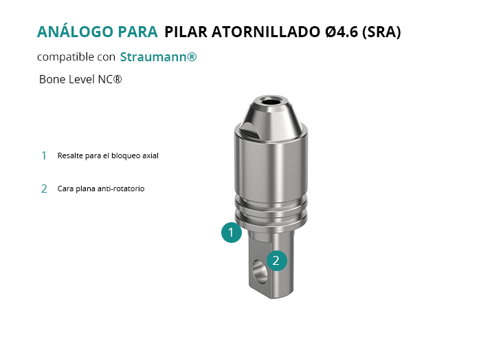 Análogo para Pilar Atornillado Ø4.6 (SRA) Compatible con Straumann® Bone Level NC®