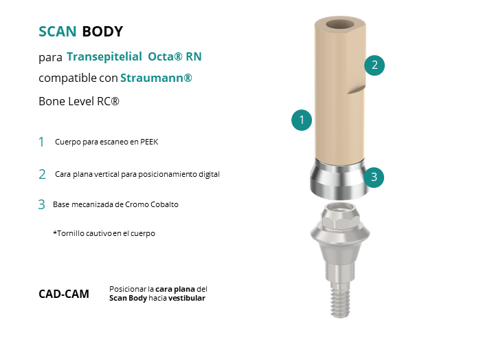 Scan Body para Transepitelial Octa® RN compatible con Straumann® Bone Level RC®