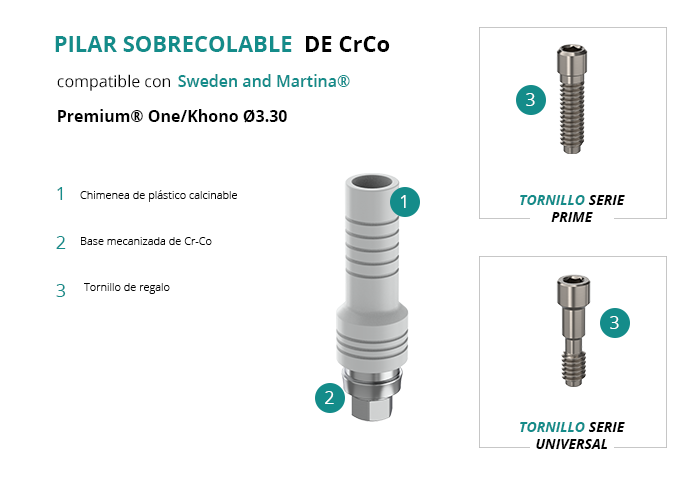 Pilar Sobrecolable de CrCo compatible con Sweden and Martina® Premium® One/Khono Ø3.30