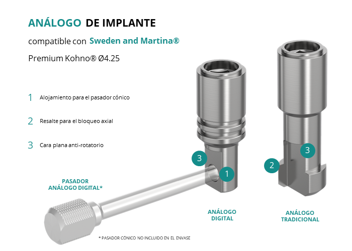 - Análogo digital: para modelos fabricados en resina por impresión 3D, el bloqueo se realiza mediante un pasador ligeramente cónico, que asegura el posicionado axial.