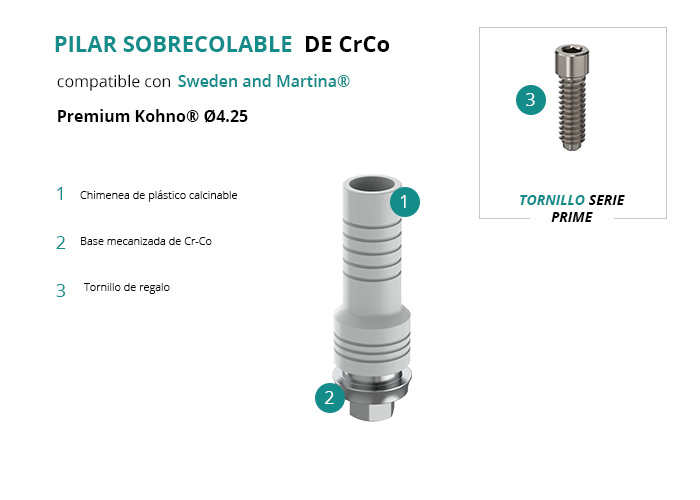 Pilar Sobrecolable de CrCo compatible con Sweden and Martina® Premium Kohno® Ø4.25