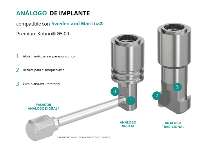- Análogo digital: para modelos fabricados en resina por impresión 3D, el bloqueo se realiza mediante un pasador ligeramente cónico, que asegura el posicionado axial.