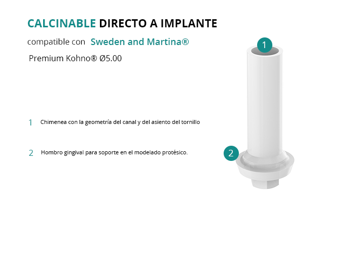 Calcinable Directo a Implante Compatible con Sweden and Martina® Premium Kohno® Ø5.00
