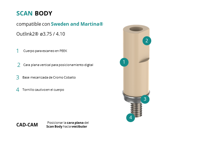 Scan Body compatible con Sweden and Martina® Outlink2® Ø3.75 / 4.10