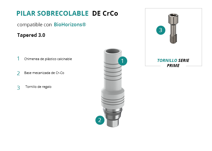 Pilar Sobrecolable de CrCo compatible con BioHorizons® Tapered 3.0